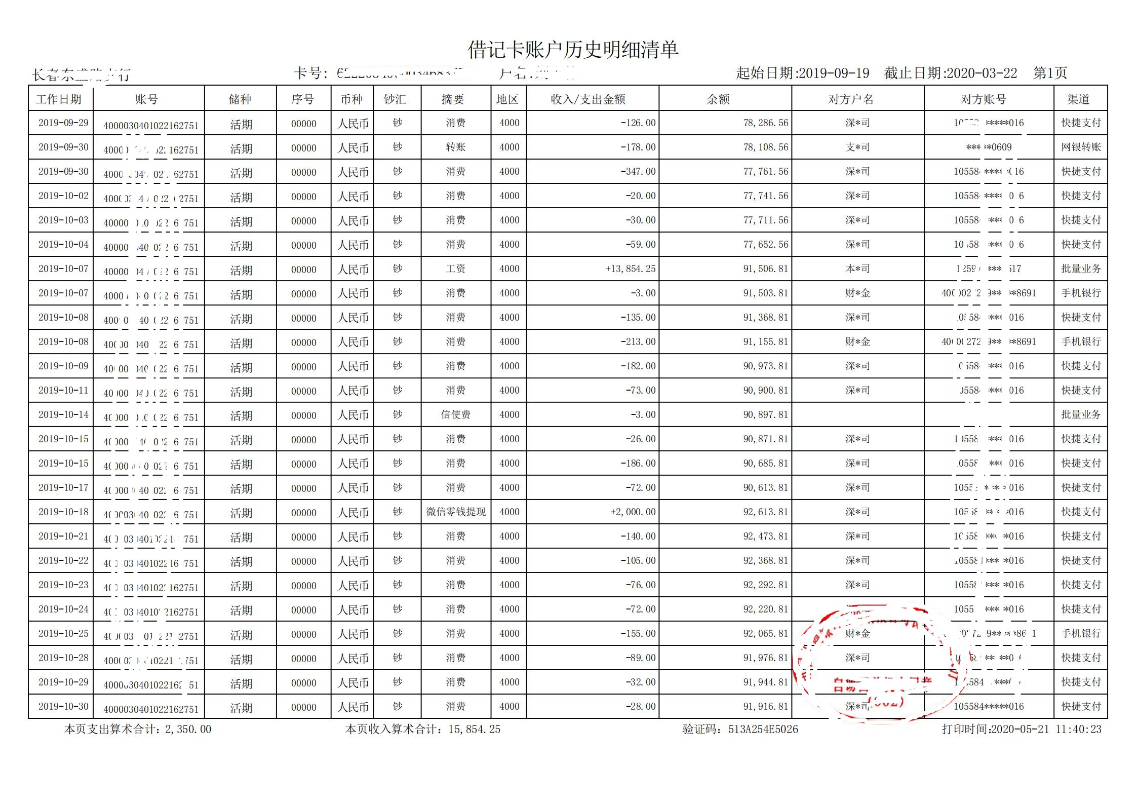 中国建设银行流水展示